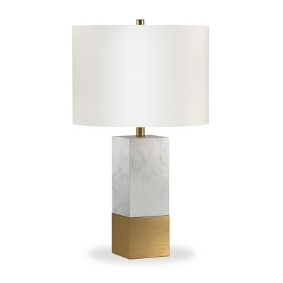 LumiSource (Set of 2) Marabella 26" Contemporary Marble Table Lamps White Marble and Brass Metal with White Linen Shade