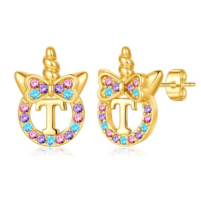 Turandoss 18K Gold Initial Unicorn Earring Gifts for Girls Women - S925 Sterling Silver Post Diamond Stud Earrings Hypoallergenic, Christmas Gifts