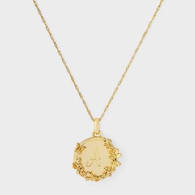 14k Gold Dipped Floral Etched Initial "A" Round Tag Pendant Necklace - A New Day™ Gold
