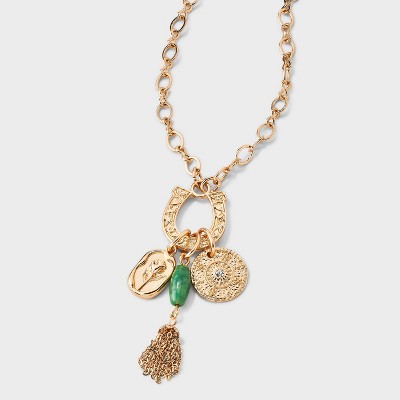 Floral Stationed Layered Necklace - Universal Thread™ Gold: Multi-Strand Chain, Lobster Claw Clasp, 18" Length