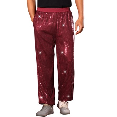 Lars Amadeus Men's Baggy Elastic Waist Costume Night Club 70s Disco Metallic Sequin Pants
