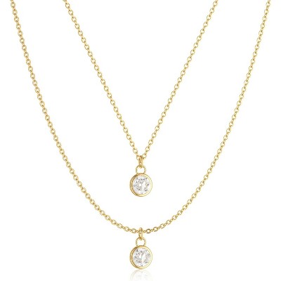HTUTWOO Layered Gemstone Pendant Necklace, Gold Square Choker, Oval Crystal Necklace, Rope Chain Necklace Jewelry for Women