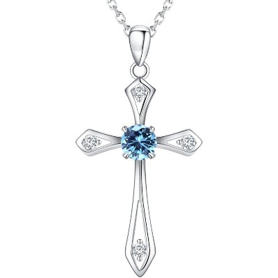 SmallRig Sterling Silver Sapphire Birthstone Cross Necklace, Gold Plated, September Gift for Women