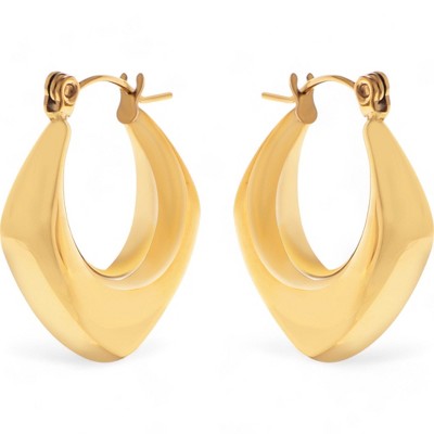 Anna-Kaci Women's Gold Tone Hoop Fashion Earrings with Sculptural Modern Geometric Design - Gold