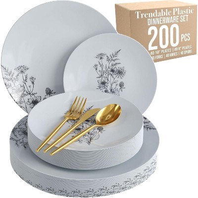 Trendables Wedding Disposable Dinnerware Set with Elegant Plates and Gold Cutlery