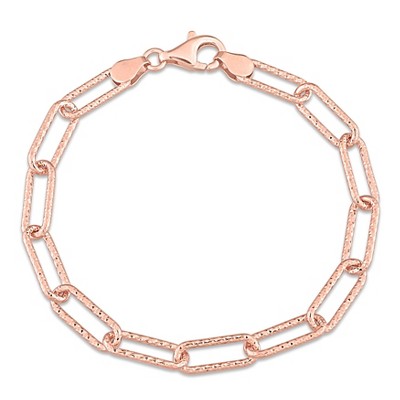 EVERLY JEWELRY | Rose Plated Sterling Silver 6mm Fancy Cut Oval Link Bracelet, 7.5- inch