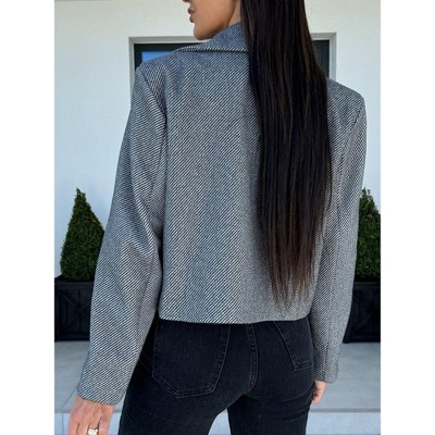 Women's Wool Blend Short Blazer Notch Lapel Button Winter Coat
