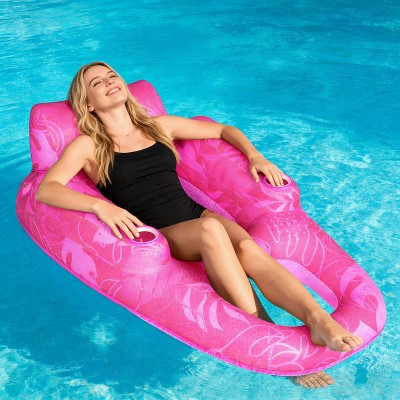 Joyfy Inflatable Pool Floats Pool Lounger, 55'' Fabric Pool Floaties Lounge For Adult With Backrest Recliner and Cup Holders, Pink