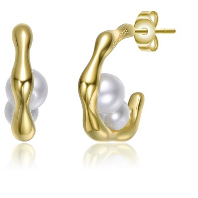 Guili Sterling Silver 14K Gold Plated Ring with a Genuine Freshwater Pearl, featuring a geometric design for a bold, refined look.