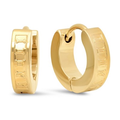 Steeltime Ladies 18k gold plated stainless steel huggie earrings with roman numeral accents