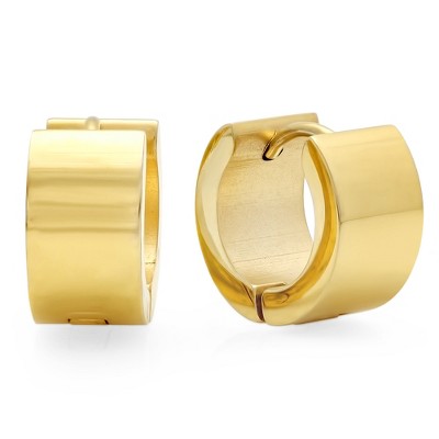 Metallo Mens Stainless Steel 15mm CZ Huggie Earrings - Gold Plated - Gold