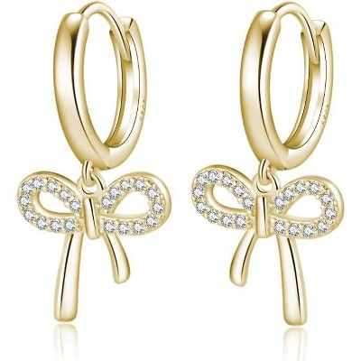 SmallRig 925 Sterling Silver Bow Hoop Earrings for Women & Teens, Ribbon Drop Huggie Design