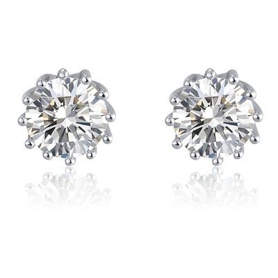 Crown Stud Earrings for Women 8mm Round Cz Sterling Silver Ginger Lyne Collection