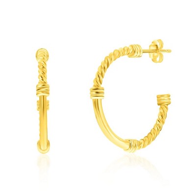 Bella Silver Sterling Silver 28mm Rope & Polished Half Hoop Earrings - Gold Plated - Gold