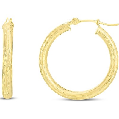 14k Yellow Gold 3mm Diamond Cut Tube Hoop Earrings