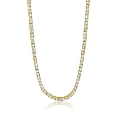 Simona Round 4mm CZ Tennis Necklace - Gold Plated - Available Colors: Yellow, Silver