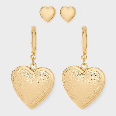 Heart Locket Hoops and Studs Set 2 pc - Wild Fable™ Gold