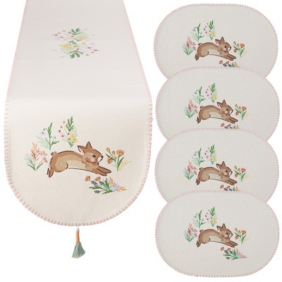 Design Imports Spring Bunny Embellished Table Runner & Placemat Set Of 4