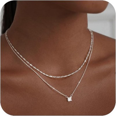14K Gold Layered Necklace Set - Floral Clover Pendant Stackable Jewelry for Women, Engagement/Birthday Gift