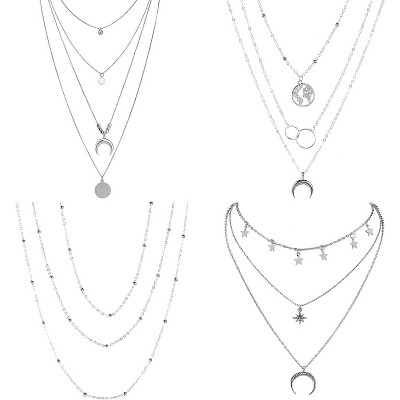 6 Pcs Layered Necklace Set - Gold & Silver Moon Star Coin Choker for Women