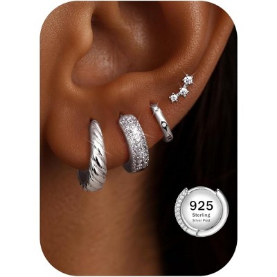 Hypoallergenic 14K Gold Filled Small Hoops Stud Set S925 Sterling Silver Post Non Tarnish