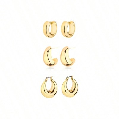 14K Gold over Sterling Silver Stud Earrings with Simulated Diamonds set of 3 (6 total pieces)