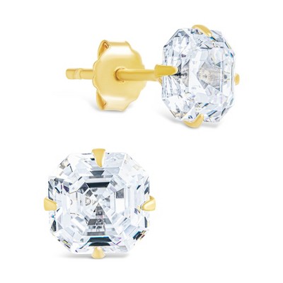 SHINE by Sterling Forever Sterling Silver Asscher Cut Prong Set Stud Earrings