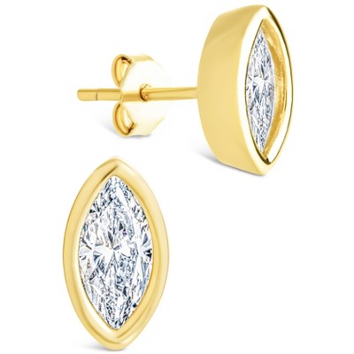 SHINE by Sterling Forever Sterling Silver Oval Cut Bezel Set Stud Earrings
