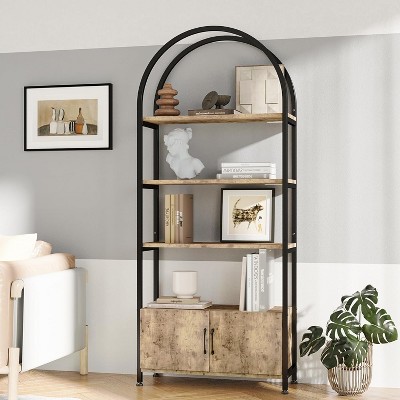 Acekool Arched Bookshelf, Metal Frame Tall Open Display Rack with Wood Shelves for Living Room