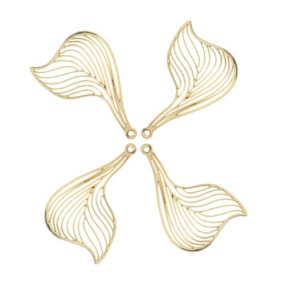 John Bead Beadwork Findings 25x38mm Leaf Gold Pendants for Jewelry Making, 4pcs