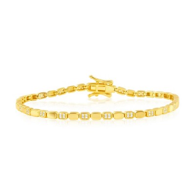 Bella Silver Sterling Silver, Polished & Pave CZ Bracelet - Gold Plated - Gold - 7.5 Inch