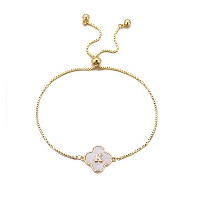 Adornia 14k Gold Plated Mother of Pearl Initial Clover Bolo Bracelet
