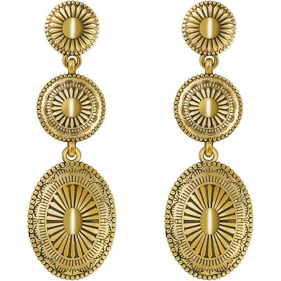 Hollywood Sensation Boho Gypsy Coin Dangle Earrings 2 Inches Gold