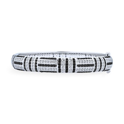 Bling Jewelry Geometric Art Deco Statement CZ Bangle Bracelet Rhodium Plated Brass