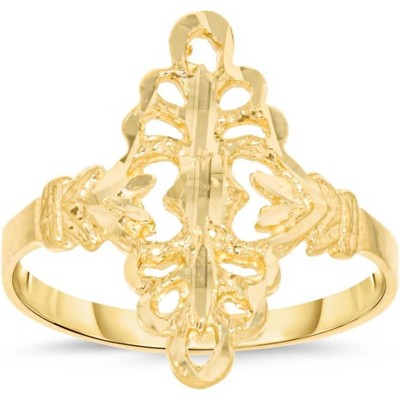10k Yellow Gold 18.8mm Oval Floral Openwork Filigree Ring