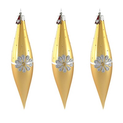 Santa Land 5.5 Inch Vintage Gold Daisy Drops Christmas Tree Ornament Set , Ornaments Box Set Retro (3PC)