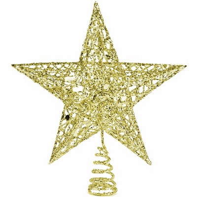 Aoibox 1 Piece 9 Inch Gold Glitter Christmas Tree Topper Metal Hollow Star Ornament for 4 to 10 Ft Tree Holiday Home Decoration