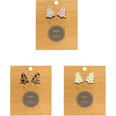 Christmas Tree Stud & Hoop Earrings - Acrylic Dangle Jewelry with Gold Star, Alpaca & Santa Hat