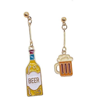 Wine & Coffee Dangle Earrings - Asymmetric Drink Themed Funny Jewelry, Dainty Everyday Statement