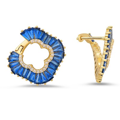 Sterling Silver Sapphire CZ Clover Statement Hoop Earrings