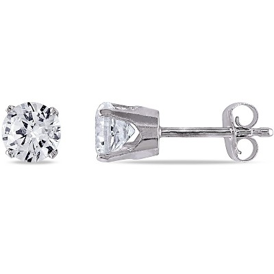 EVERLY JEWELRY | 10K White Gold 1 1/5 CT TGW Round Created White Sapphire Solitaire Earrings