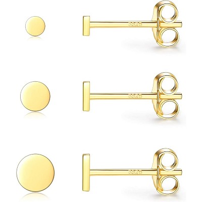 Flat Back Stud Earrings Stack Set (7 Pairs) - 14K Gold Plated & Silver, Hypoallergenic for Sensitive Ears