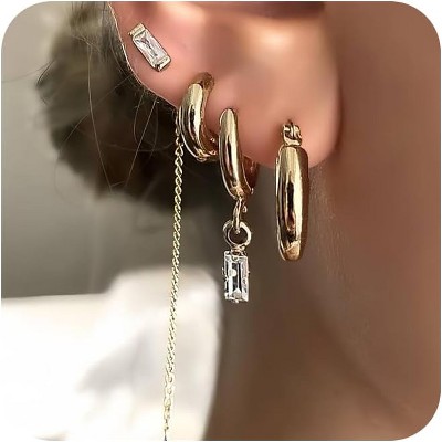 14K Gold Plated Hoop Earrings Set: Chunky CZ Hoops & Dainty Studs for Women