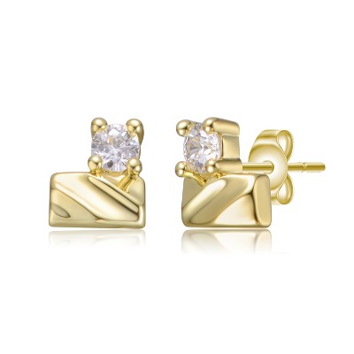 Guili Sterling Silver 14K Gold Plated Stud Earrings with Bezel Set Clear Cubic Zirconia Offer a Sleek, Timeless Look with Subtle Everyday Sparkle