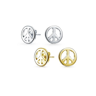 Bling Jewelry Set of 2 Dainty World Peace Sign Stud Earrings Gold Plated Sterling Silver