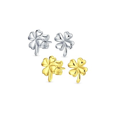 Bling Jewelry Set of 2 Irish Shamrock Stud Earrings Gold Plated Silver St. Patrick's Day Charm