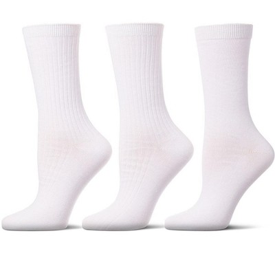 Anna-Kaci Women's 3-Pair Ribbed Crew Socks Soft Stretch Knit Classic Everyday Comfort Sock Set - White