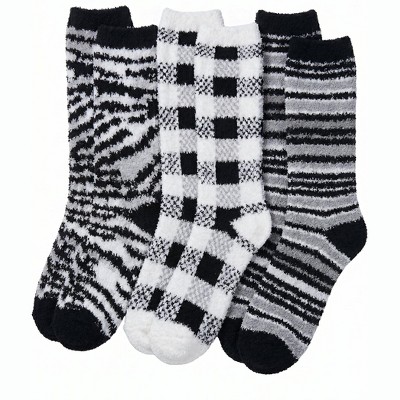 Tipi Toe Women's 3-Pairs Monochrome White Striped Pattern Anti-Slip Soft Fuzzy Winter Crew Socks