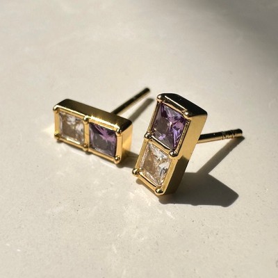 14K Gold Plated Round and Emerald Huggie Earrings With Genuine Crystals
