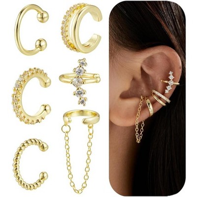 SmallRig 3PCS Ear Cuff Gold Silver Cuff Earrings for Women Teen Trendy Non Piercing Hypoallergenic Cubic Zirconia Earrings Set Jewelry Gifts